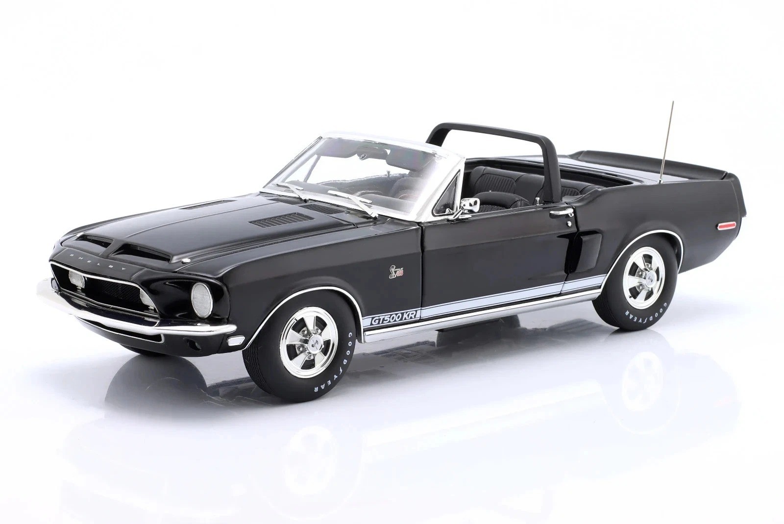 Купить масштабную модель Shelby GT500 KR Convertible 1968 черный с белым в масштабе 1/18 можно в нашем интернет-магазине. Заказать модель очень просто. Нажмите «В КОРЗИНУ», далее нажмите «ОФОРМИТЬ ЗАКАЗ», выберите способ оплаты и доставки из доступных и заполните необходимые поля. Подробнее о том, как совершить покупку, читайте в разделе оплата и доставка.