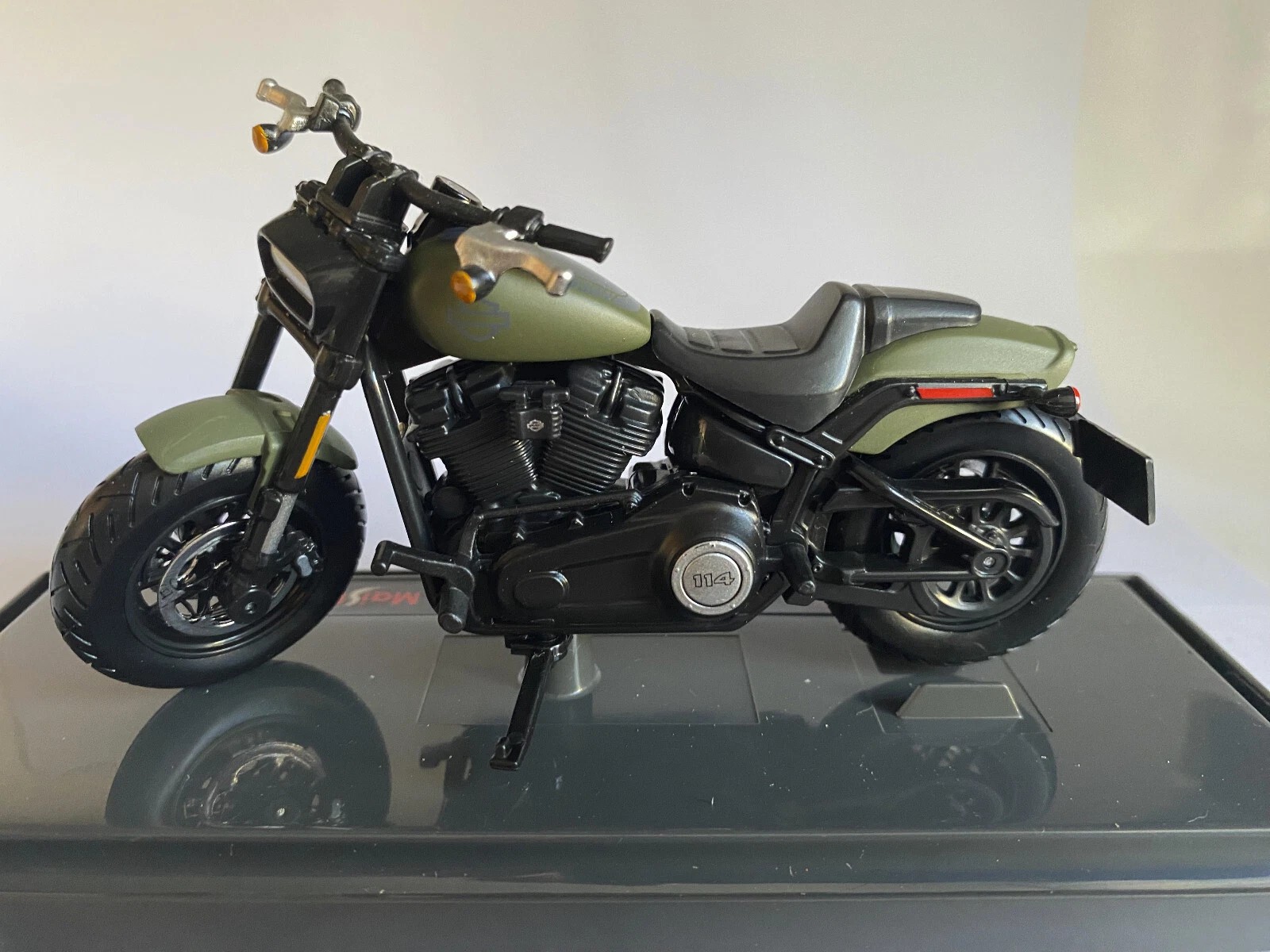 Купить масштабную модель Harley-Davidson Fat Bob 114 2022 оливковый в масштабе 1/18 можно в нашем интернет-магазине. Заказать модель очень просто. Нажмите «В КОРЗИНУ», далее нажмите «ОФОРМИТЬ ЗАКАЗ», выберите способ оплаты и доставки из доступных и заполните необходимые поля. Подробнее о том, как совершить покупку, читайте в разделе оплата и доставка.