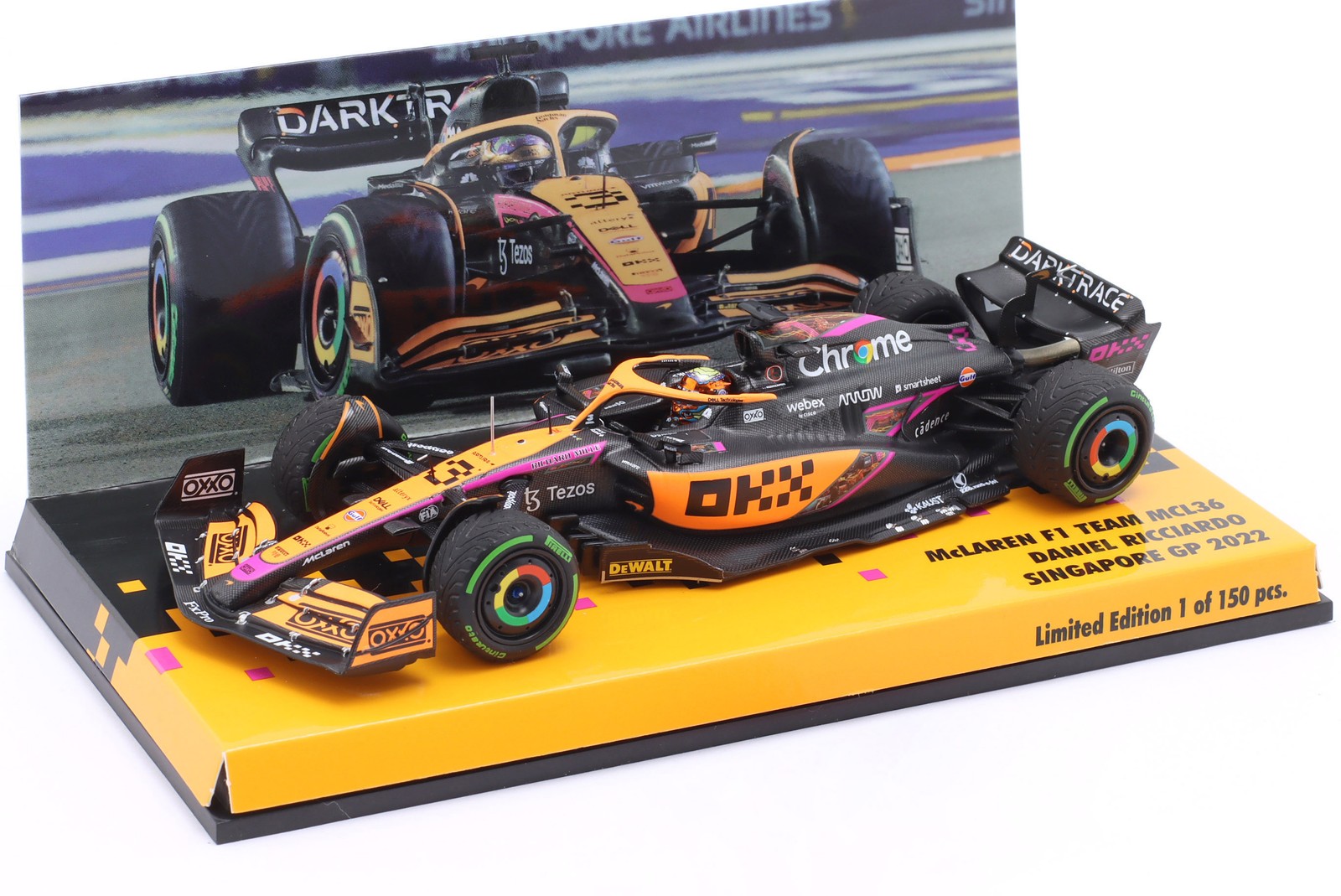 Отзывы о масштабной модели McLaren F1 MCL36 команда Mclaren #3 5-тый Гран-при Сингапура 2022 Даниэль Риккардо, оранжевый с черным