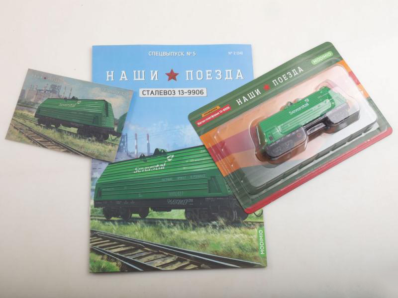 Журнал с вложением Сталевоз 13-9906 зеленый в масштабе 1/87. Журнал выпущен ограниченным тиражом. Производитель - Наши Поезда. Примерный размер модели автомобиля в масштабе 1/87 составляет около 5 см в длину для легкового автомобиля. Для грузовиков, автобусов и другой техники точные размеры модели можно получить путем деления размеров прототипа на масштаб.