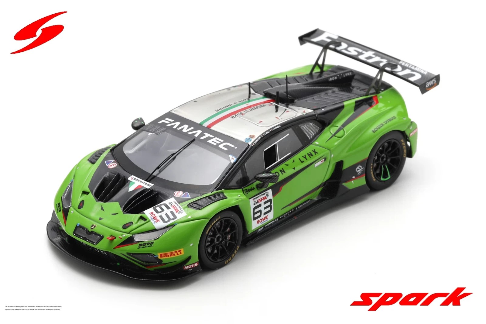 Отзывы о масштабной модели Lamborghini GT3 Evo2 24 часа Спа #63Caldarelli/Cairoli/Bortolotti 2024 зеленый с серебристым
